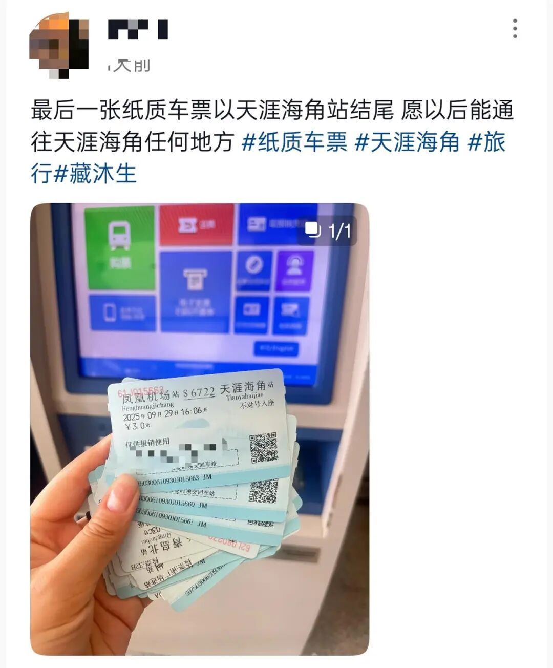 据了解,天涯海角站位于海南省三亚市,由于其名字的特殊含义,许多乘客选择购买从凤凰机场至天涯海角站的车票,然后打印下来,作为最后一张纸质车票的纪念。
