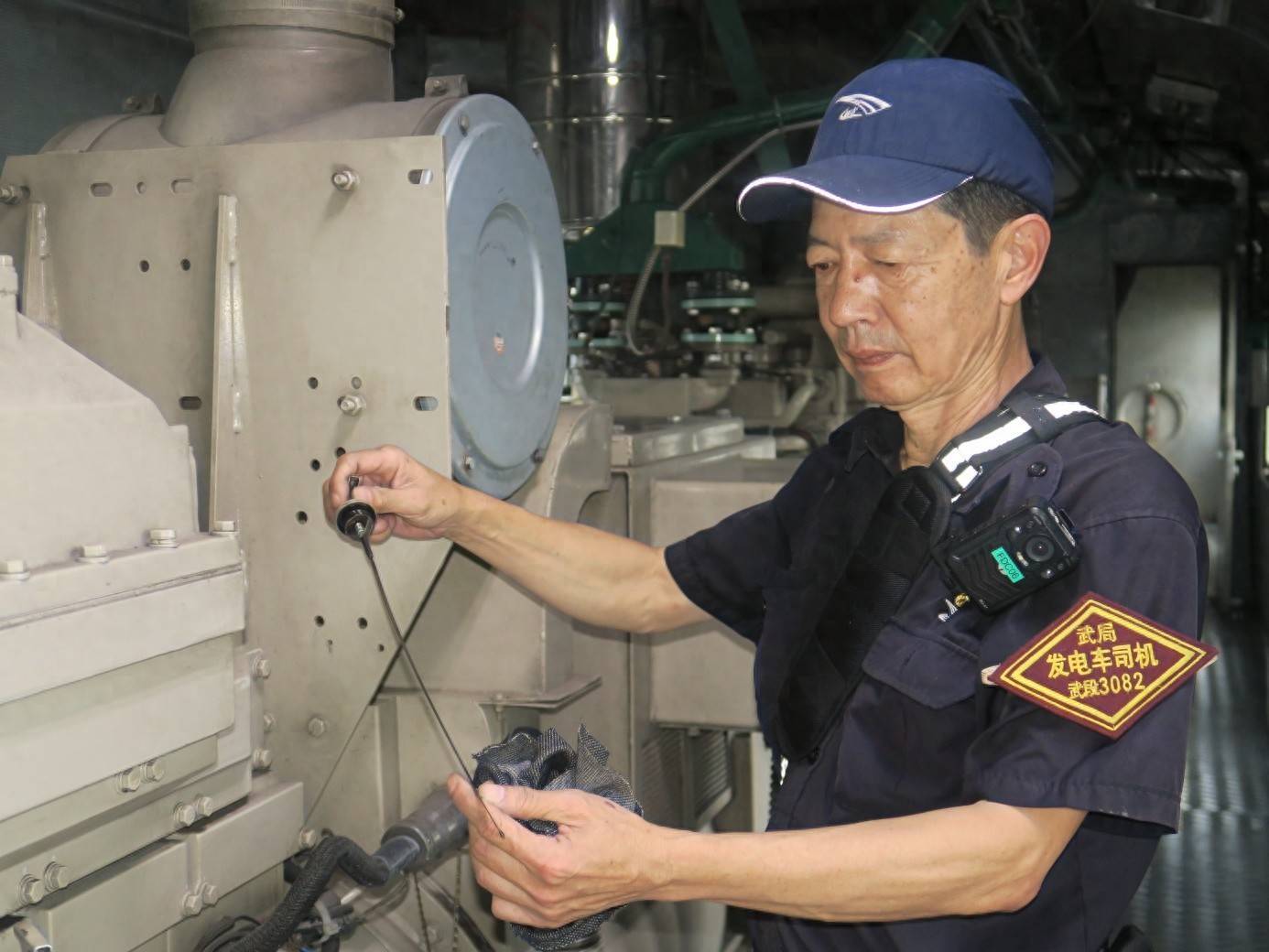 今年59岁的发电车乘务长马卫平,1985年毕业分配到客车车辆段,1993年成为首批发电车乘务员,值乘过多趟不同类型的发电车,30年来安全值乘600多万公里。他经历过2008年大雪灾,谈起这段经历,马卫平感慨地说道:“当时雪下的很大,南下的线路停电了,接触网挂满了冰,我值乘的发电车在衡阳站信号楼连续给列车供电26天。”跟发电车打了30多年的交道,马卫平对这个老伙计的“脾气”了如指掌,经过长时间的摸索和积累,他总结出的“听、看、闻、摸、比”五字途中巡视法在全段范围内推广使用,能够准确快速判断发电车故障类型。